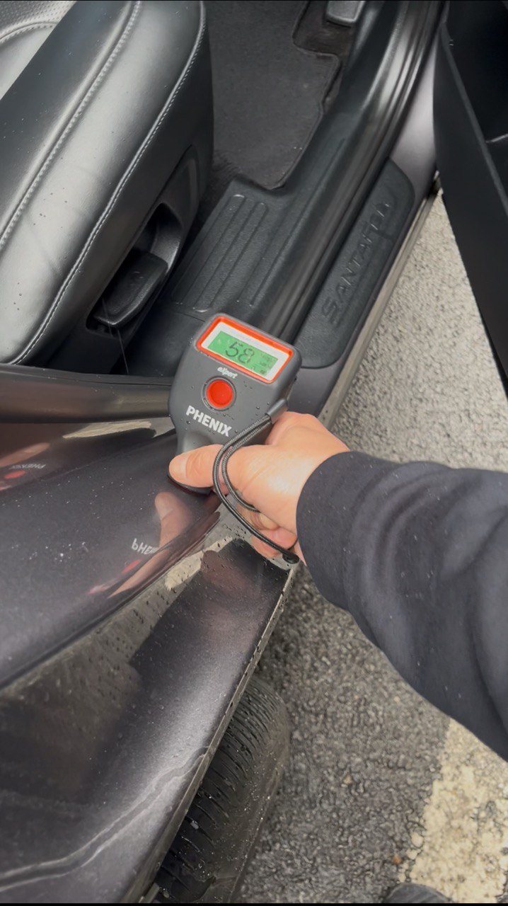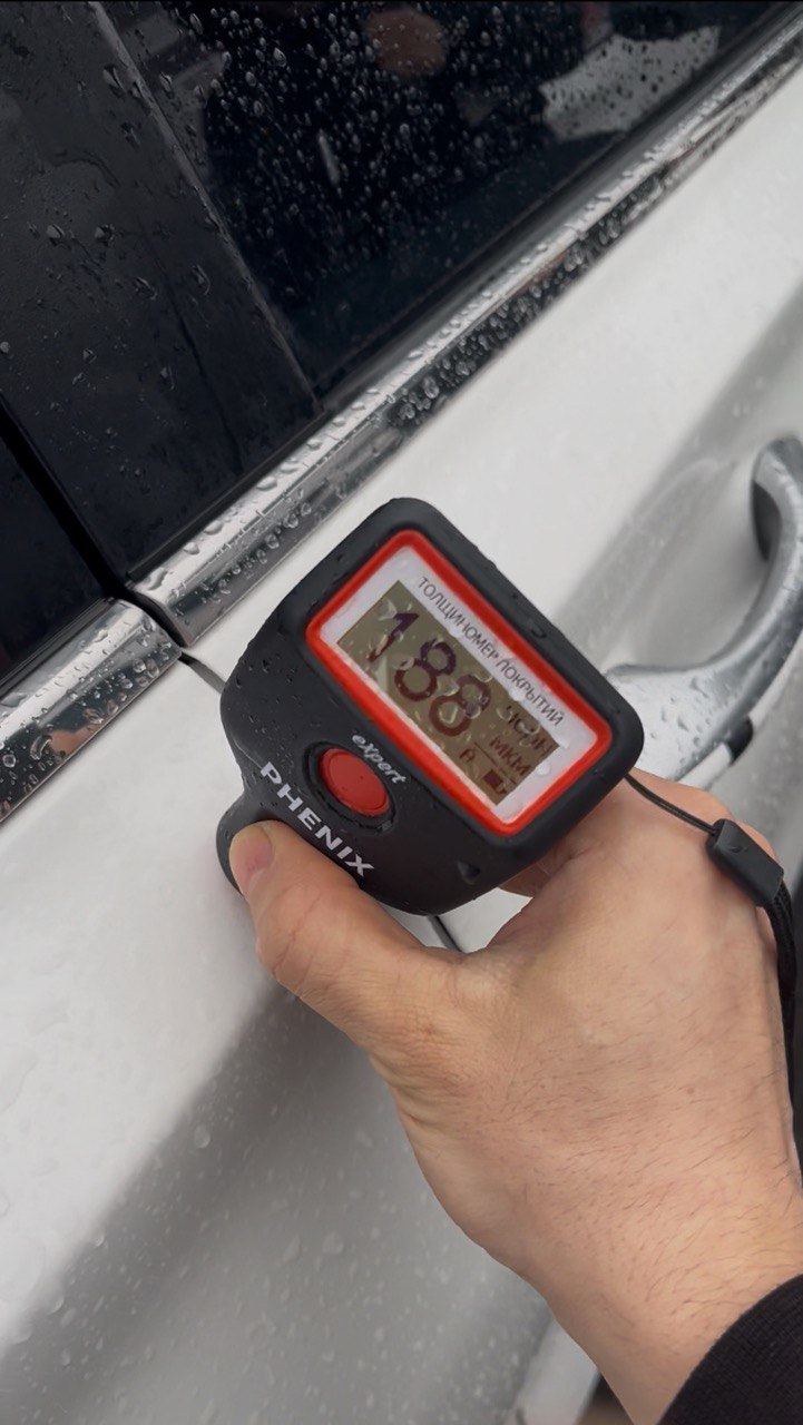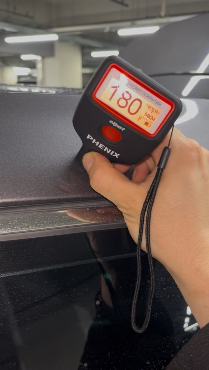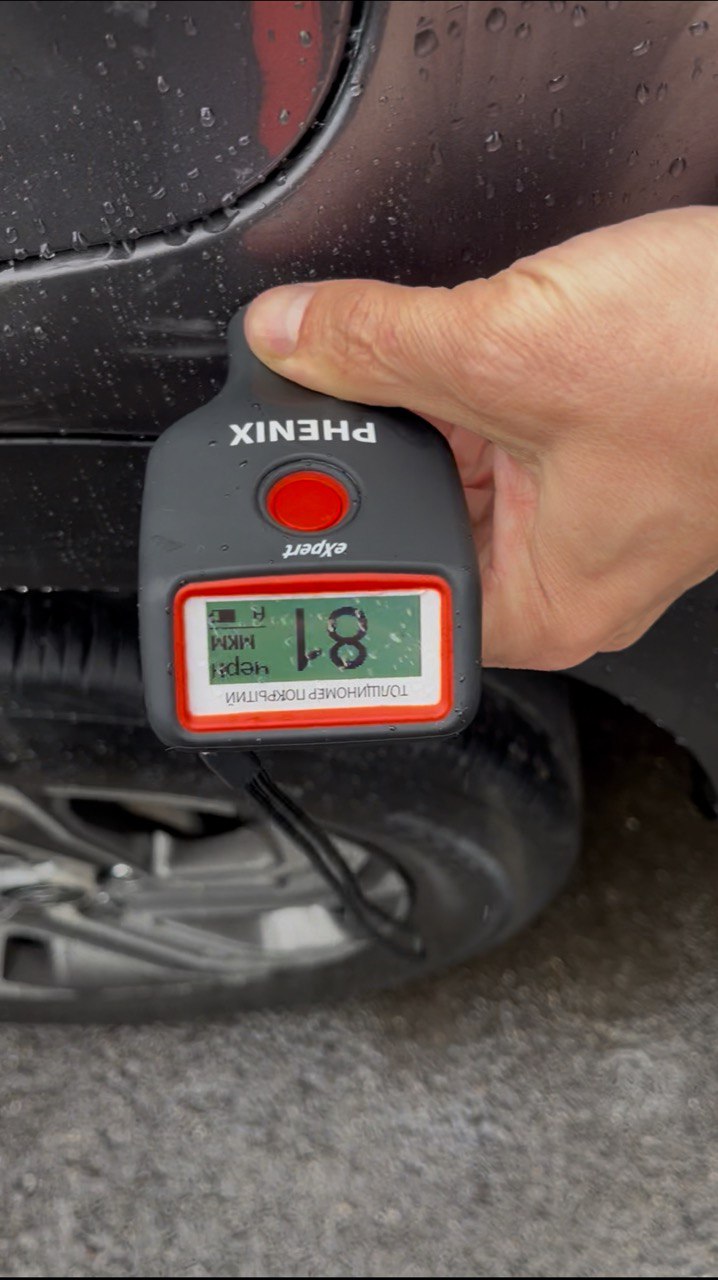 И о чудо! Сам не веря в то что весь автомобиль вкруг в заводском окрасе, имея лишь мелкие царапки по кузову, отснимаю заказчику видео в котором полностью затыкиваю толщиномером этот авто на котором показания не превышают 90-120мкм.