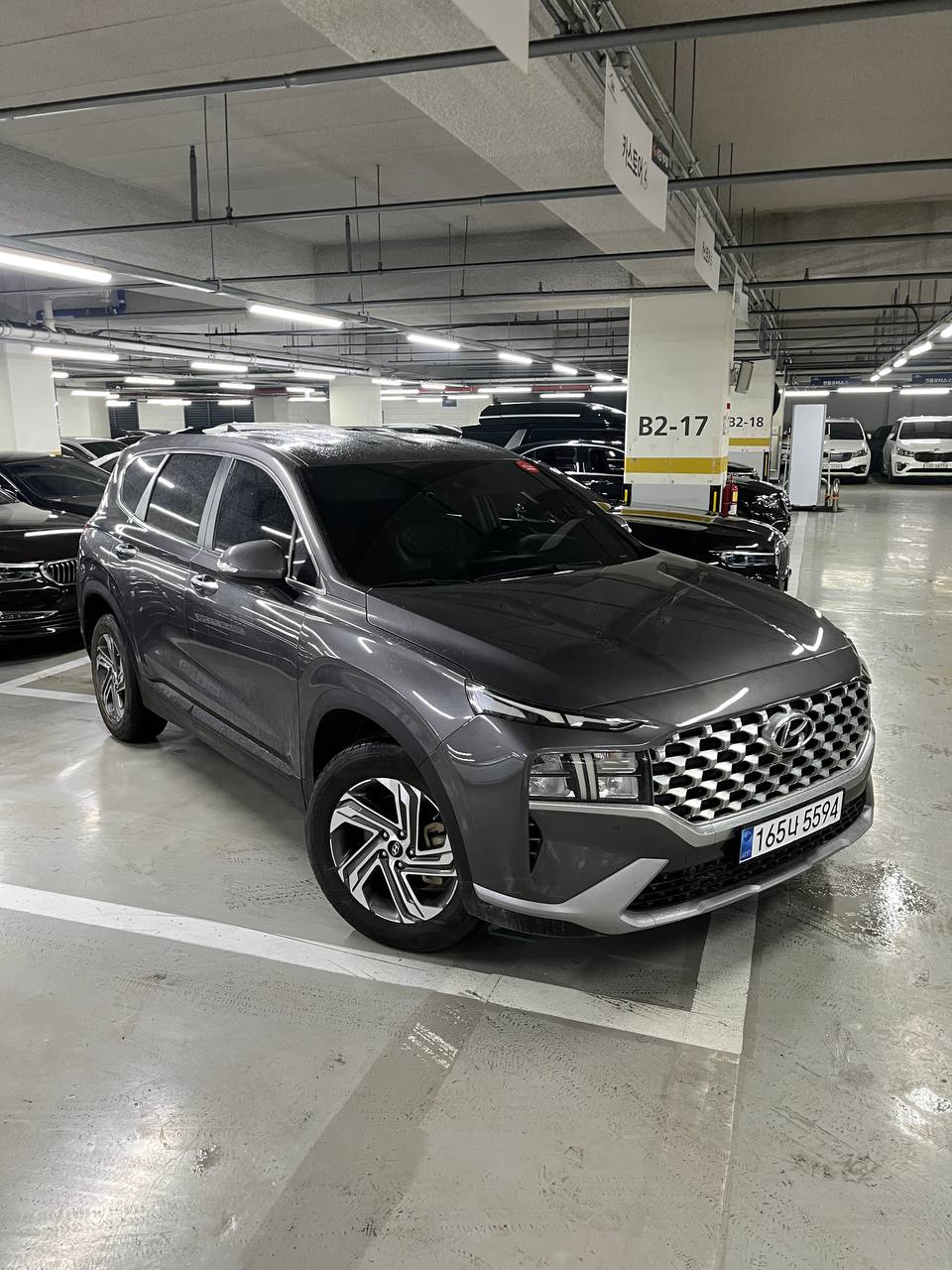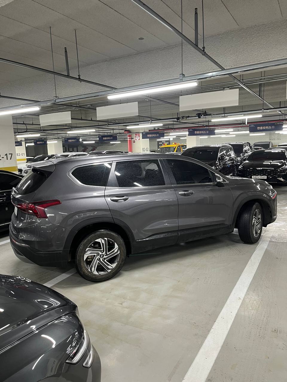 Вариант №2. Серый SantaFe — мой подбор. Цена 24.500.000₩Следующий вариант находился совсем не далеко от первого. Сразу при сближении с этим автомобилем появилось какое-то положительное предчувствие. Знаете когда смотришь со стороны на авто, и появляется какое-то необъяснимое чувство доверия к автомобилю, так как по нему уже видно что авто стоит бодро, все зазоры с завода не тронутые. Мчусь проверять этот автомобиль.